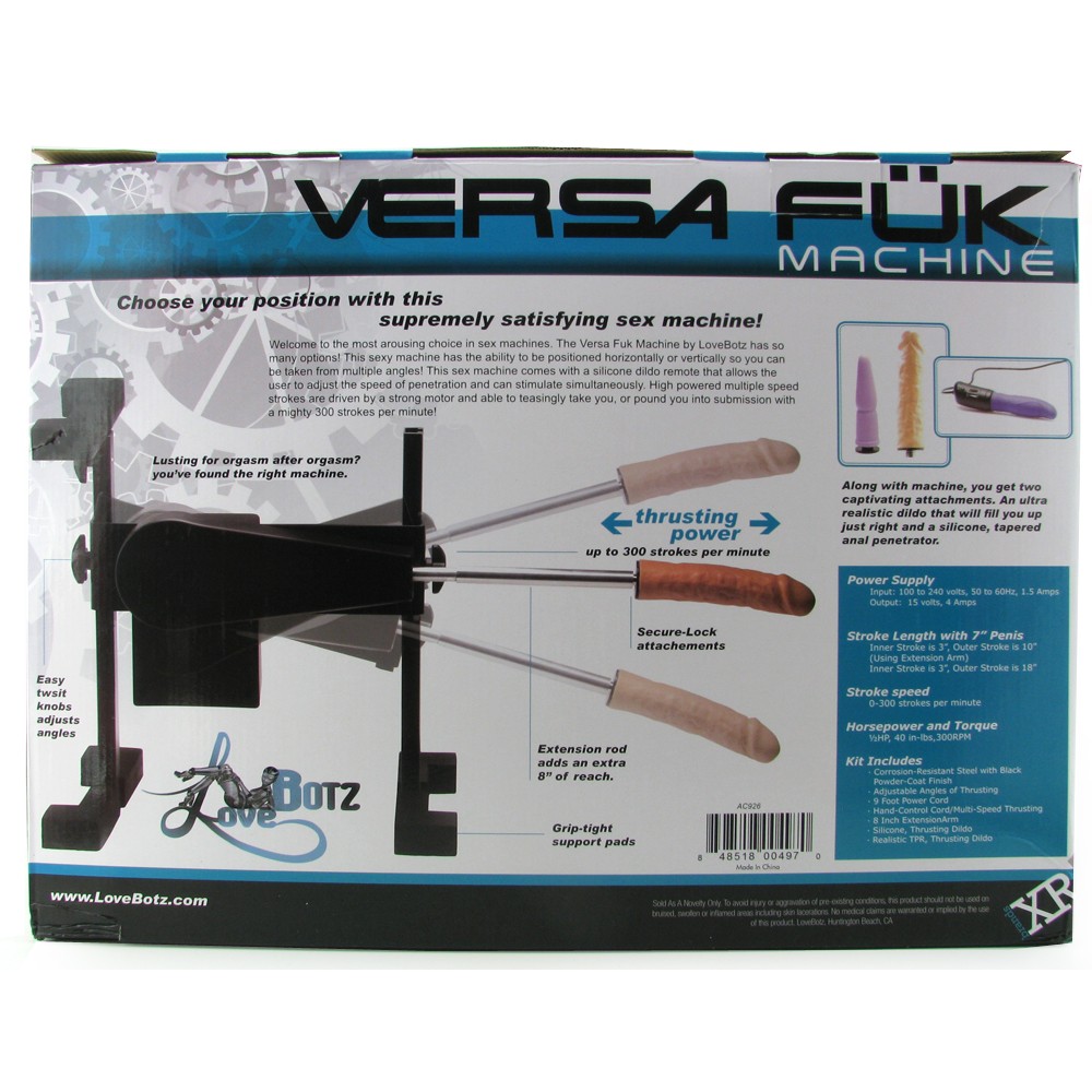 A real life sex machine with never-ending stamina, completely adjustable positioning and intense, customizable thrusting action, this completely unique Versa Fuk electric sex system also offers two distinctive penetrative attachments plus a bonus silicone vibe, hands-free operation…in other words, immeasurable pleasure potential.