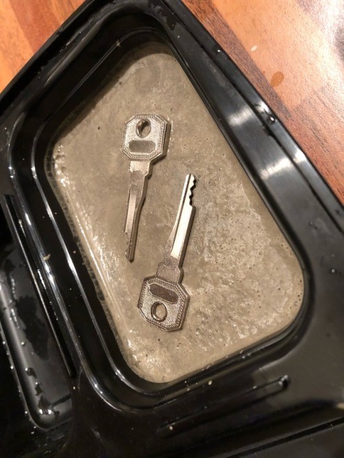 Until I can find a key holder this block of concrete will do… after I removed the block from the cast, I realised I don’t even have a hammer