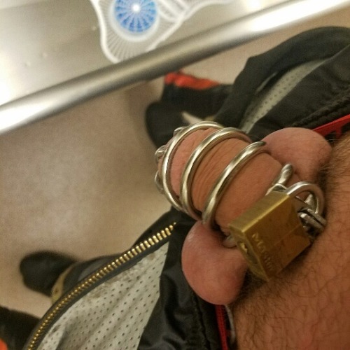 chastityguy716:trying to piss in my bike gear, standing like an…