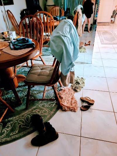 He had me stand & turn around and sit on his cock reverse cowgirl style while he sat arms spread, his back against the couch like he is hot shit. I spread my lips & put his cock in me…he said, slowly…I went up and down on his head…oo. He liked that. Then he maneuvered me onto the carpeted floor kneeling…He entered me that way, then split my legs to do what he called scissor style. Legs spread in different directions, one leg bent up by my head. I am bendable still! He goes so deep that way.. I said, yes fuck me HARDER..I want to feel you tomorrow! He could not get a good footing, so off the the bedroom.